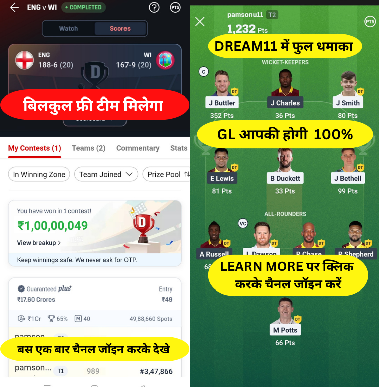 Daily earning | firts rank | Dream11 Fantasy Sports